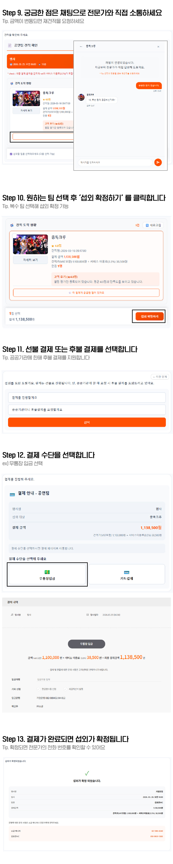 아티스트와 상세 조율은 채팅을 통해 할 수 있어요.