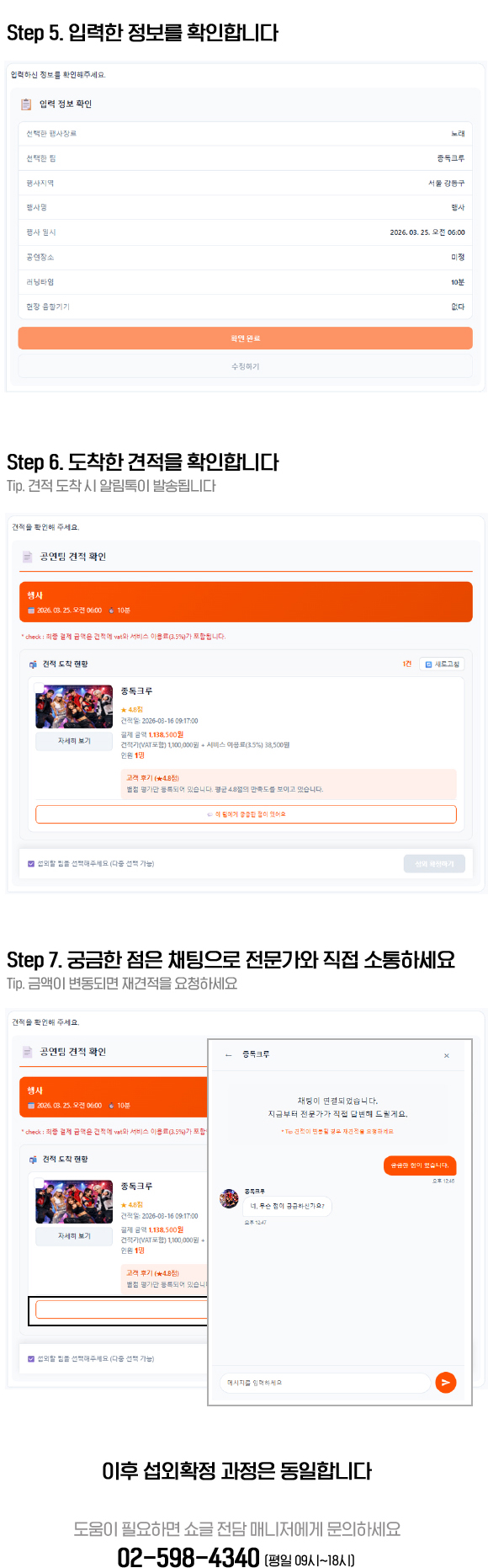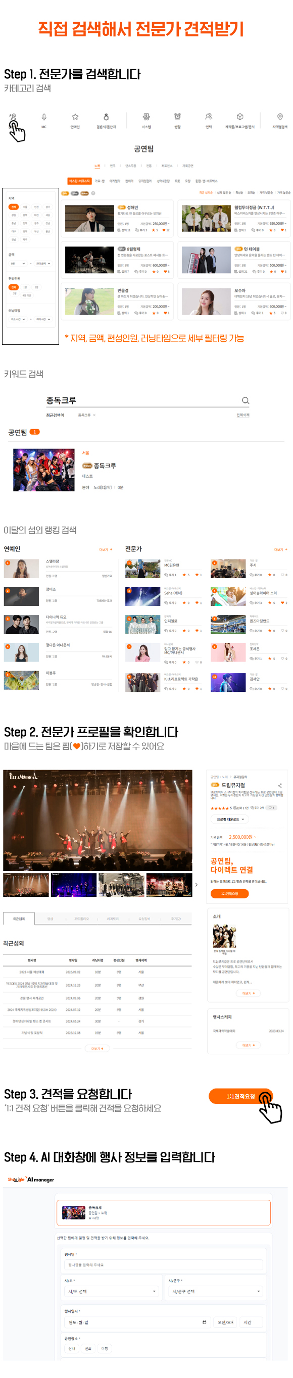 ‘1:1 견적요청’을 이용해 주세요!